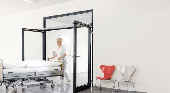 Ob per Fernbedienung, Wandtaster oder Radarmelder – unsere Automatiktüren in Hannover garantieren eine mühelose und flexible Steuerung ganz nach Ihren Bedürfnissen. Besonders in Krankenhäusern sorgen unsere automatischen Drehflügeltüren in Hannover für schnellen, barrierefreien Zugang zu Stationen und Räumen – perfekt für Patienten, Personen mit eingeschränkter Mobilität und Krankentransporte.